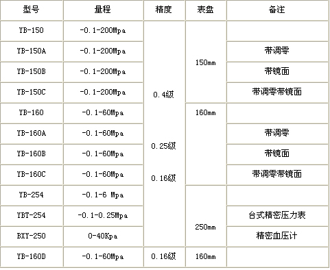 精密壓力表型號與規格